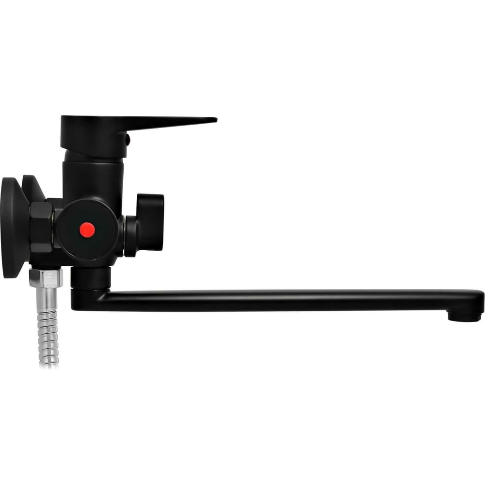 Смеситель для ванны Juguni с длинным изливом черный, шланг 150 см, лейка, 0402.156