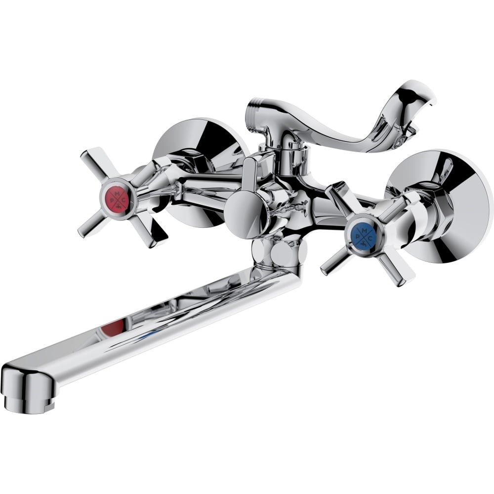 Настенный двуручковый смеситель для ванны с длинным поворотным изливом — стильное дизайнерское решение, которое органично сочетает функциональность и эстетичный внешний вид. Стильный и функциональный двухвентильный смеситель для ванны и душа с длинным поворотным изливом удобен и надежен в использовании. Покупка водосберегающего смесителя 2.0 РМС - выгодное и практичное решение. С ним вы уменьшите плату за воду. Наш смеситель полностью окупает свою стоимость. Смеситель превращает воду на выходе в воздушно-водную смесь, при этом диаметр струи и сила напора сохраняется. Смесители РМС официально признаны самыми экономичными и занесены в Реестр рекордов России. Пользоваться смесителем РМС 2.0 удобно и приятно. Струя смесителя, образует меньше брызг, а значит, уборка на кухне легче и быстрее. Пузырьки воздуха помогают быстрее и эффективнее удалять загрязнения, поэтому моющих средств расходуется меньше. При производстве смесителей ТМ РМС используются только высококачественные материалы. Все модели проходят процесс гальванизации, что придает им большую износостойкость и улучшает антикоррозийные свойства. Хромированная поверхность не потеряет со временем свой роскошный вид, а уход за ней сводится к протиранию мягкой салфеткой. Установка смесителя крайне проста.
