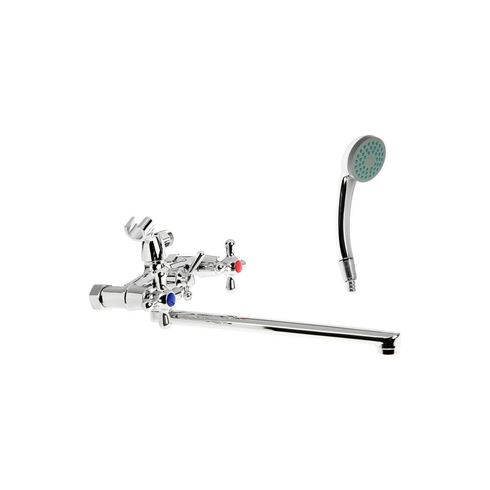 Смеситель для ванны Zein излив 30 см, кран-букса латунь 1/2", душевой набор, хром ZC2051 7603376