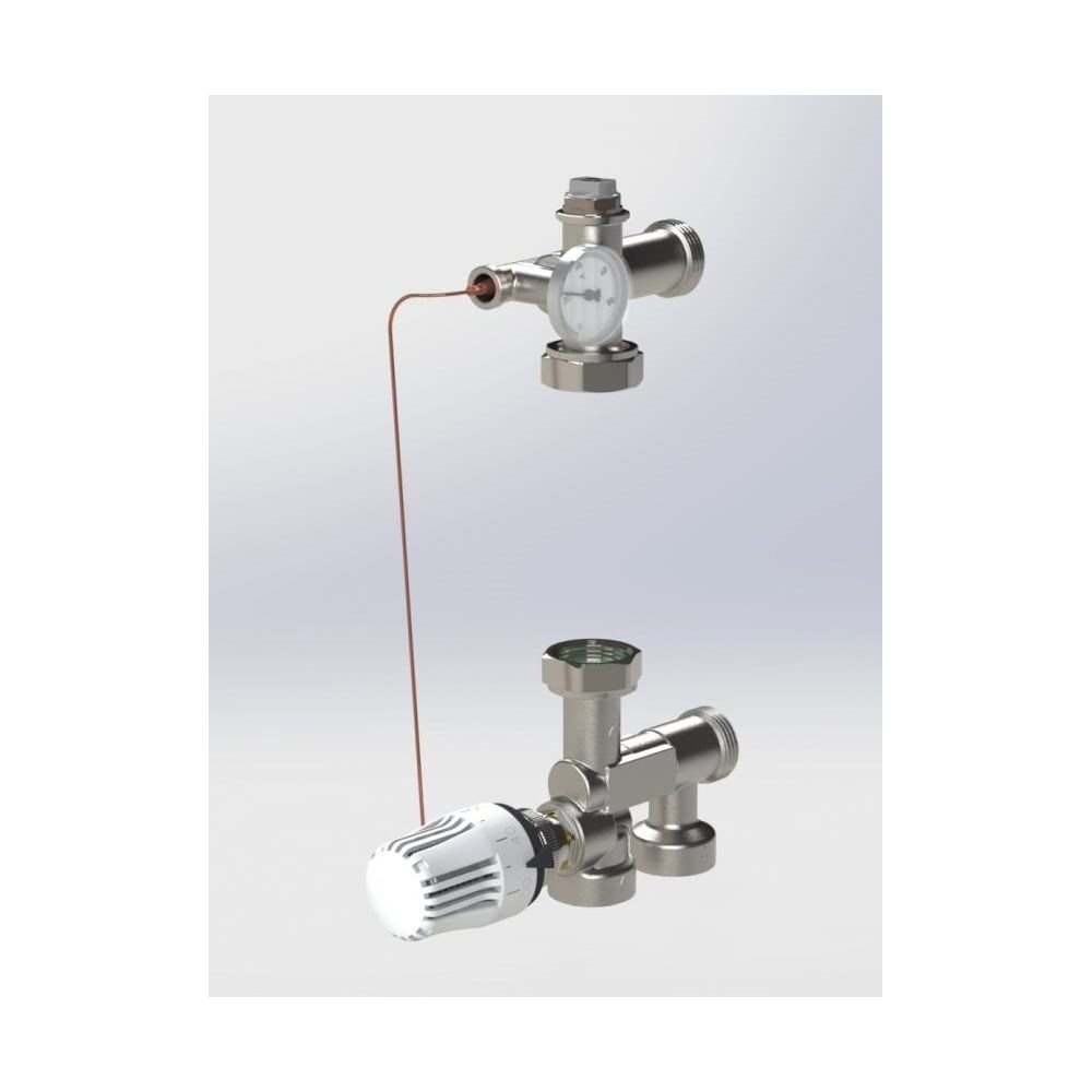 Смесительный узел TM3-C обеспечивает циркуляцию в низкотемпературном контуре отопления. Заданная температура в этом контуре поддерживается термостатическим вентилем с установленной на нём термостатической головкой с погружным датчиком температуры. Необходимое количество тепла поступает из высокотемпературного контура отопления. Температура подачи теплоносителя отображается на термометре.Pn max - 10bar T max - 90°C Диаметр подключения - 1' Диапазон регулировки во вторичном контуре, - от 20°C до 60°C Межосевое расстояние, - 210мм Монтажная длина циркуляционного насоса - 130ммПринцип работы аналогичной позиции (TM3-R) ниже на видео
