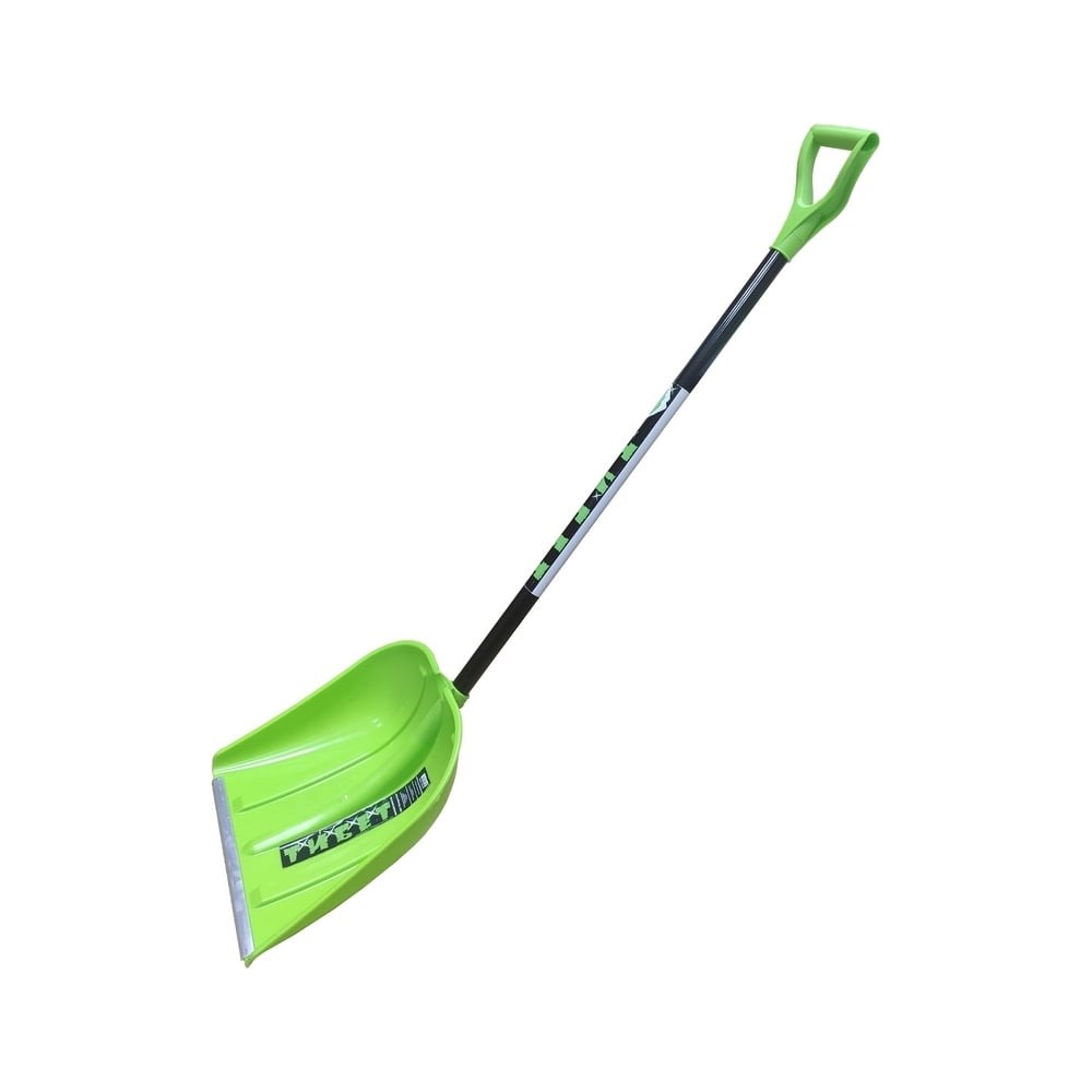Цветная пластиковая снеговая лопата. Укомплектована съемным алюминиевым черенком с пластиковой ручкой. Предназначена для уборки свежевыпавшего снега на придомовых территориях, дорожках. Габариты ковша и небольшой вес делают её одной из самых востребованных снегоуборочных лопат и позволяют использовать её не только для уборки снега, но и для зерновых работ. Характеристики: материал: первичный блоксополимер полипропилена спец.марки ; накладка: алюминий; ребра жесткости: 3шт; ручка на черенке: пластиковая, V-образная; общая высота изделия: 1420мм;