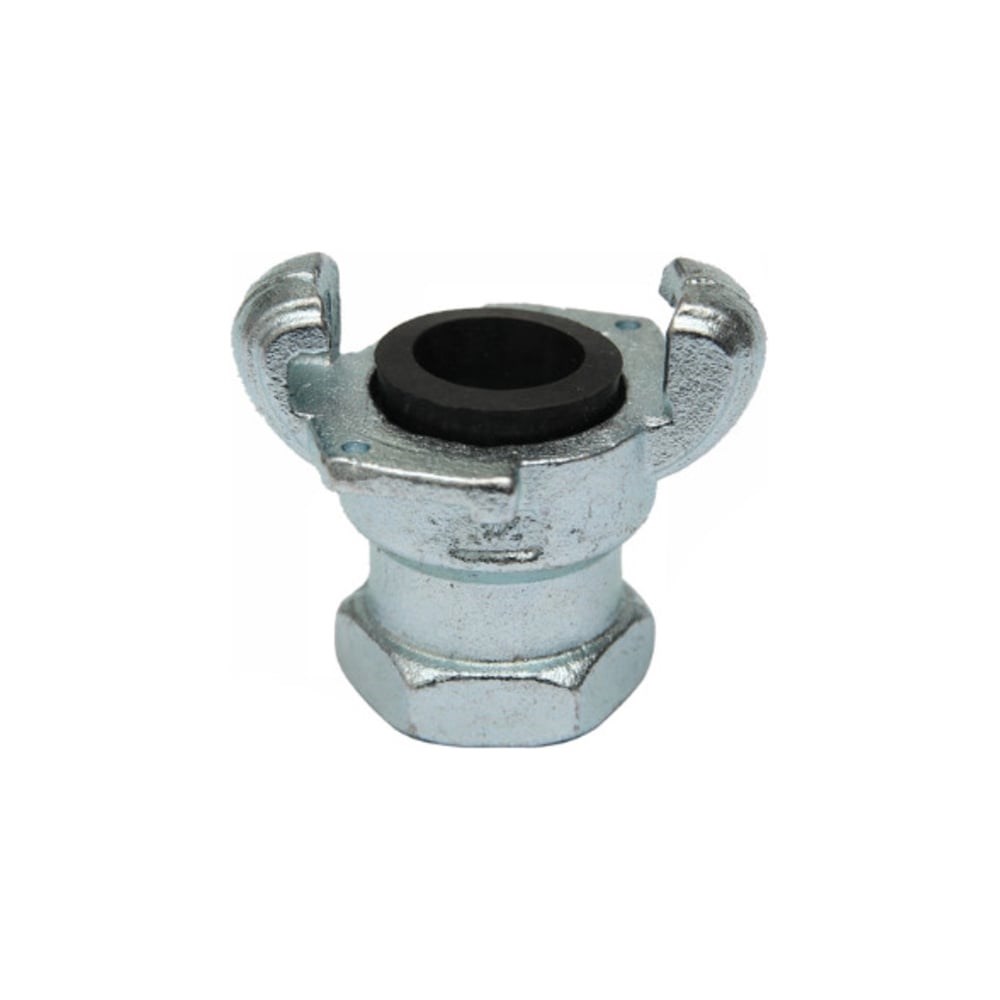 Соединение для воздуха "GERMES" (AIR KING) с внутренней резьбой NPT TITAN LOCK изготовлено из оцинкованной стали. Имеет два клыка для размеров от 0,25 до 1 дюйма, и четыре клыка для размеров от 1,25 до 2 дюймов.В комплекте специальный предохранительный штифт для предохранения от размыкания при вибрации.