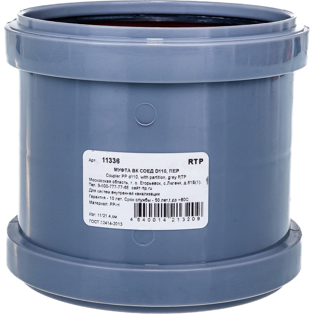 Канализационная соединительная муфта RTP с перегородкой, 110 мм, серая 36712