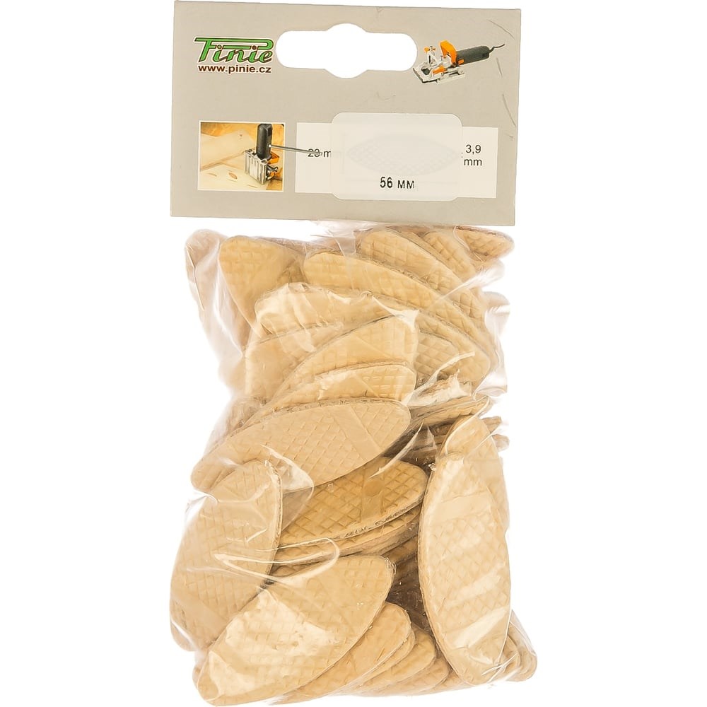 Соединительная ламель 56х23х4мм, 45шт PINIE 160-2050 - плоский шкант для невидимого соединения деревянных деталей. Подходит для сборки небольших ящиков, кухонных шкафов и пр.