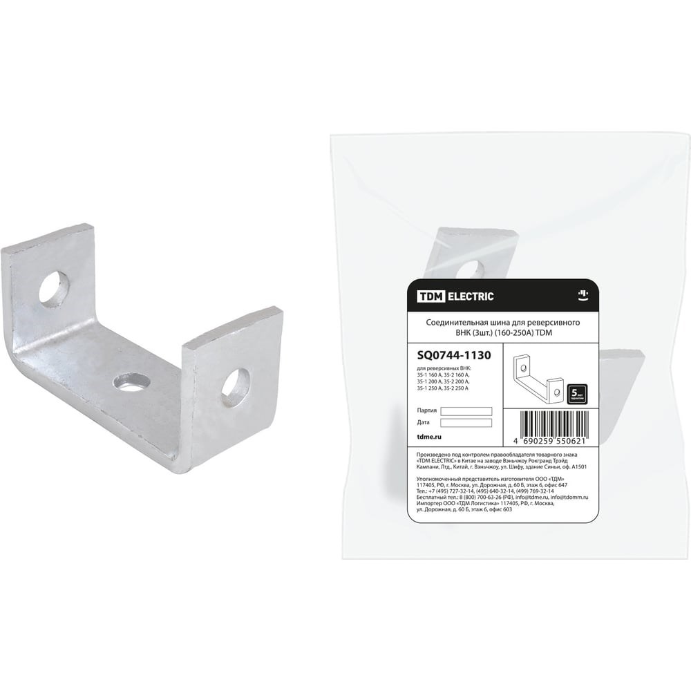 Дополнительные характеристики соединительной шины для реверсивного ВНК TDM 160-250А SQ0744-1130: Для полюсного объединения, со стороны питания или нагрузки неподвижных контактов реверсивных рубильников ВНК. Для комплектации выключателей в корпусе ВНК с целью расширения их функциональных характеристик. Выполнена из меди покрытой оловом. Расширение функциональных возможностей при помощи соединительной шины для реверсивных ВНК.