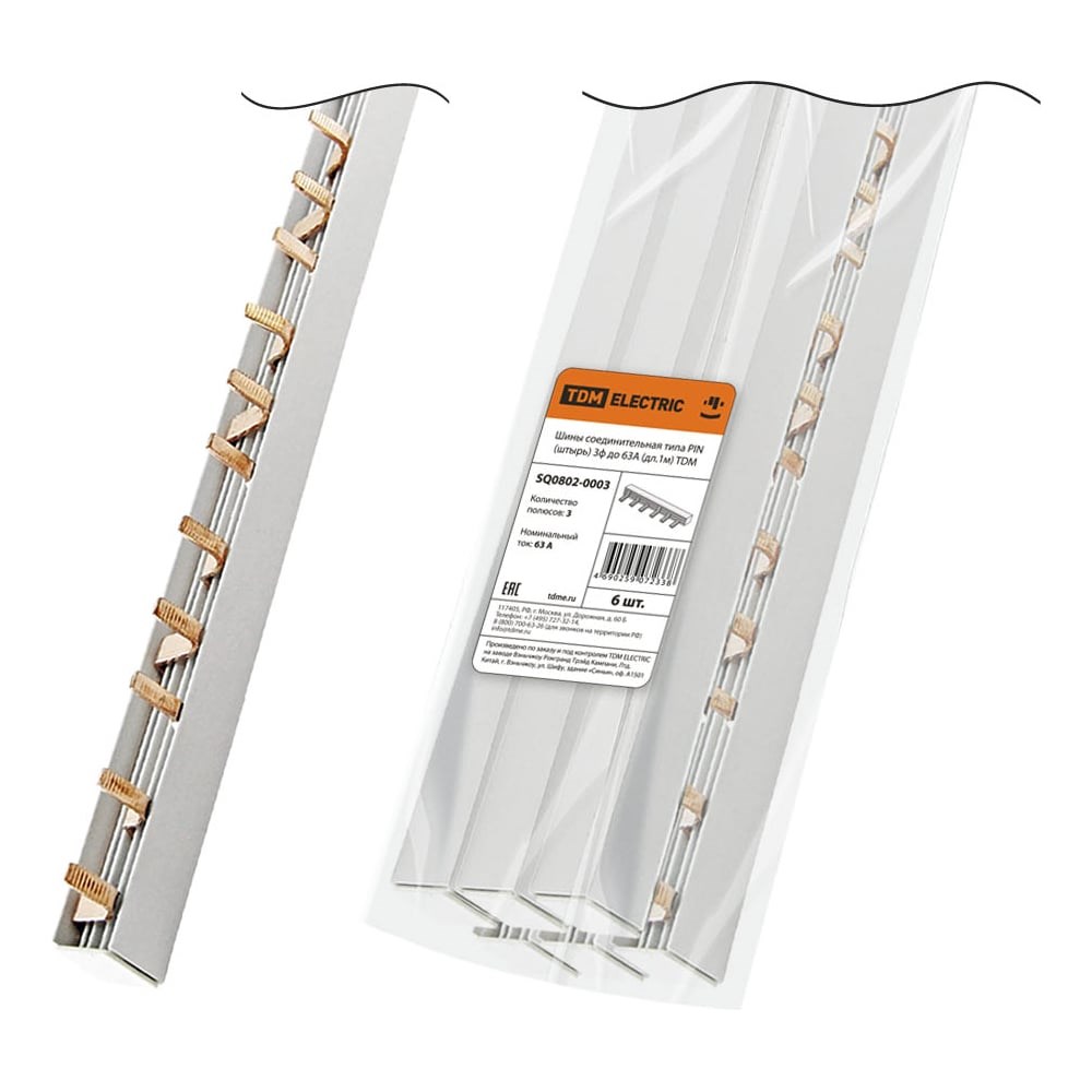 Соединительная шина TDM ELECTRIC 3П 63А PIN штырь 1 м. SQ0802-0003
