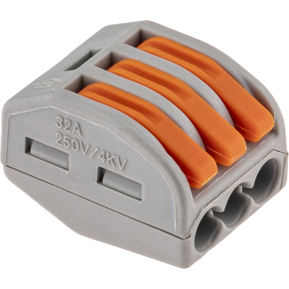 Cоединительные монтажные клеммы duwi СМК 222-413 0,08-4мм2, серая, являются полным аналогом клемм WAGO/ВАГО. Клеммы подходят для соединения моножильных и многожильных проводов, защищая их от повреждения и исключая возможность замыкания. Моножильные провода достаточно только зачистить, а многожильные - нужно обжать наконечником для наилучшего соединения контактов. Рычажки предназначены для надежного зажима кабелей. Клеммы используются в целях переменного и постоянного тока с напряжением до 415. Номинальный ток: 32 А. Сечение жесткого проводника от 0,08 до 4мм2. Клеммы duwi выполнены из негорючих материалов - термостойкий пластик, а специальные пазы в корпусе исключают возможность случайного отсоединения проводников. Рабочая температура составляет от -25С до +85С. Набор клемм из 20 штук упакован в пакет с многоразовым замком, который легко открыть и закрыть. Это позволит сохранить порядок при ремонтных работах и при хранении клемм.