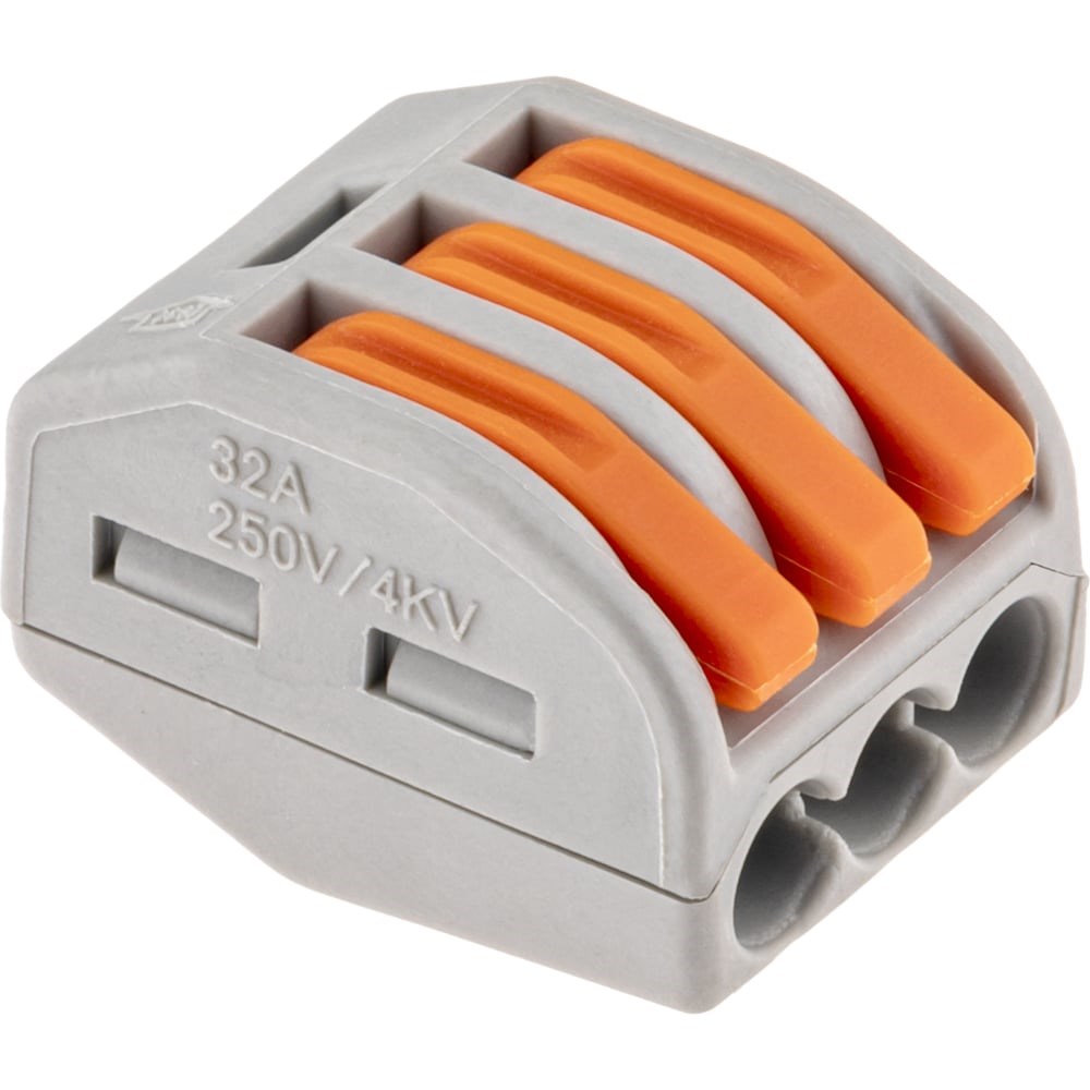 Cоединительные монтажные клеммы duwi СМК 222-413, 0,08-4мм2, серая являются полным аналогом клемм WAGO/ВАГО. 3-х контактные клеммы подходят для соединения моножильных и многожильных проводов, защищая их от повреждения и исключая возможность замыкания. Моножильные провода достаточно только зачистить, а многожильные - нужно обжать наконечником для наилучшего соединения контактов. Рычажки предназначены для надежного зажима кабелей. Клеммы используются в целях переменного и постоянного тока с напряжением до 450В. Номинальный ток: 32 А. Прозрачный корпус позволяет отследить качество соединения. Сечение жесткого проводника 4мм2. Клеммы duwi выполнены из негорючих материалов - термостойкий пластик, а специальные пазы в корпусе исключают возможность случайного отсоединения проводников. Рабочая температура составляет от -25С до +85С. Набор клемм из 5 штук упакован в пакет с многоразовым замком, который легко открыть и закрыть. Это позволит сохранить порядок при ремонтных работах и при хранении клемм.
