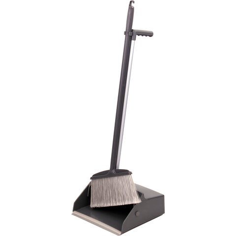 Совок для мусора КОМПЛЕКТ щетка + 2 рукоятки по 80 см, БОЛЬШОЙ улица / офис / дом, серый LAIMA PROFESSIONAL, 606663