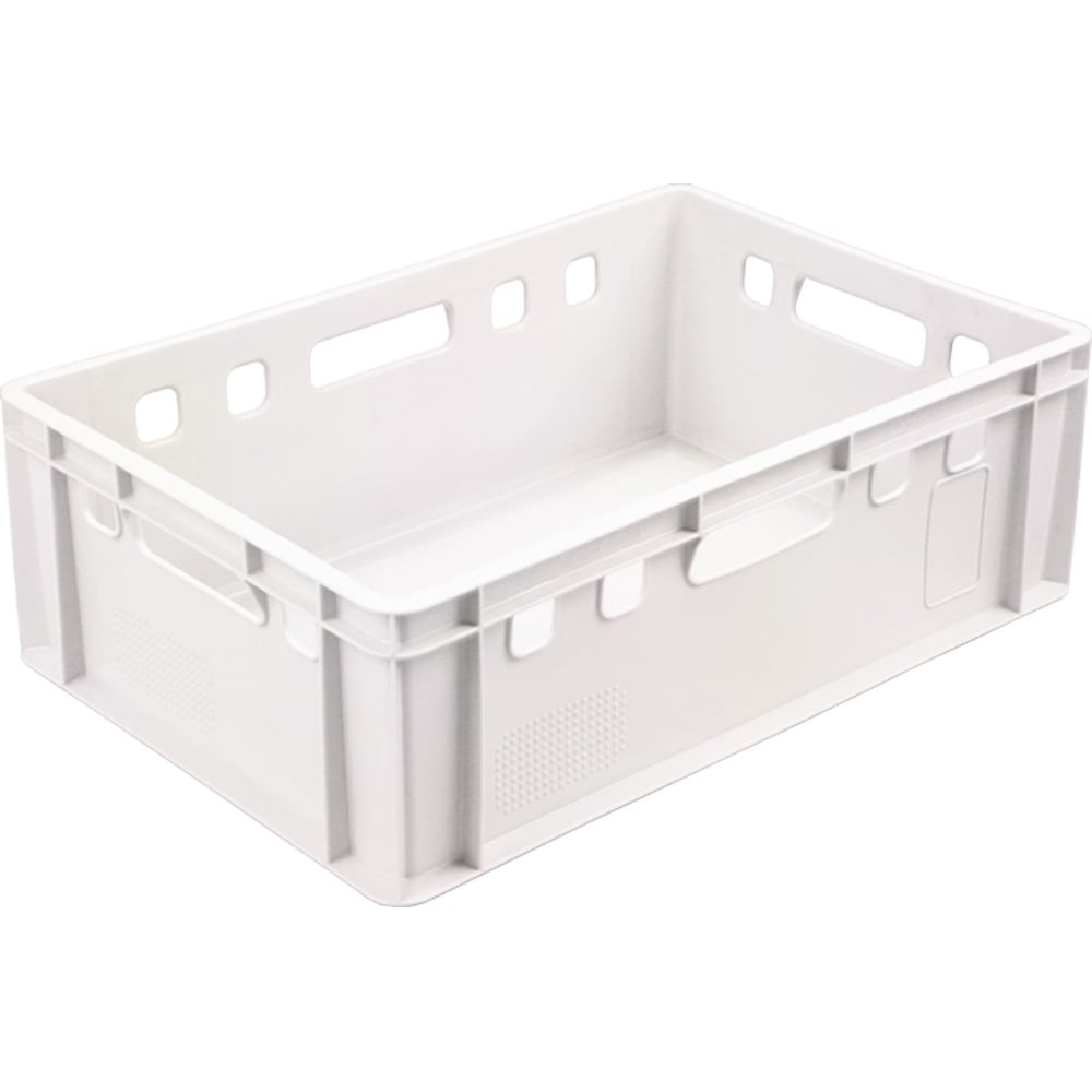 Ящик п/э 600х400х200 сплошной, белый, морозостойкий Тара.ру Е2 01682 можно использовать для транспортировки продуктов питания.Прочная конструкция, удобная форма и небольшой вес идеально подойдут для переноски и перевозки большого количества еды.