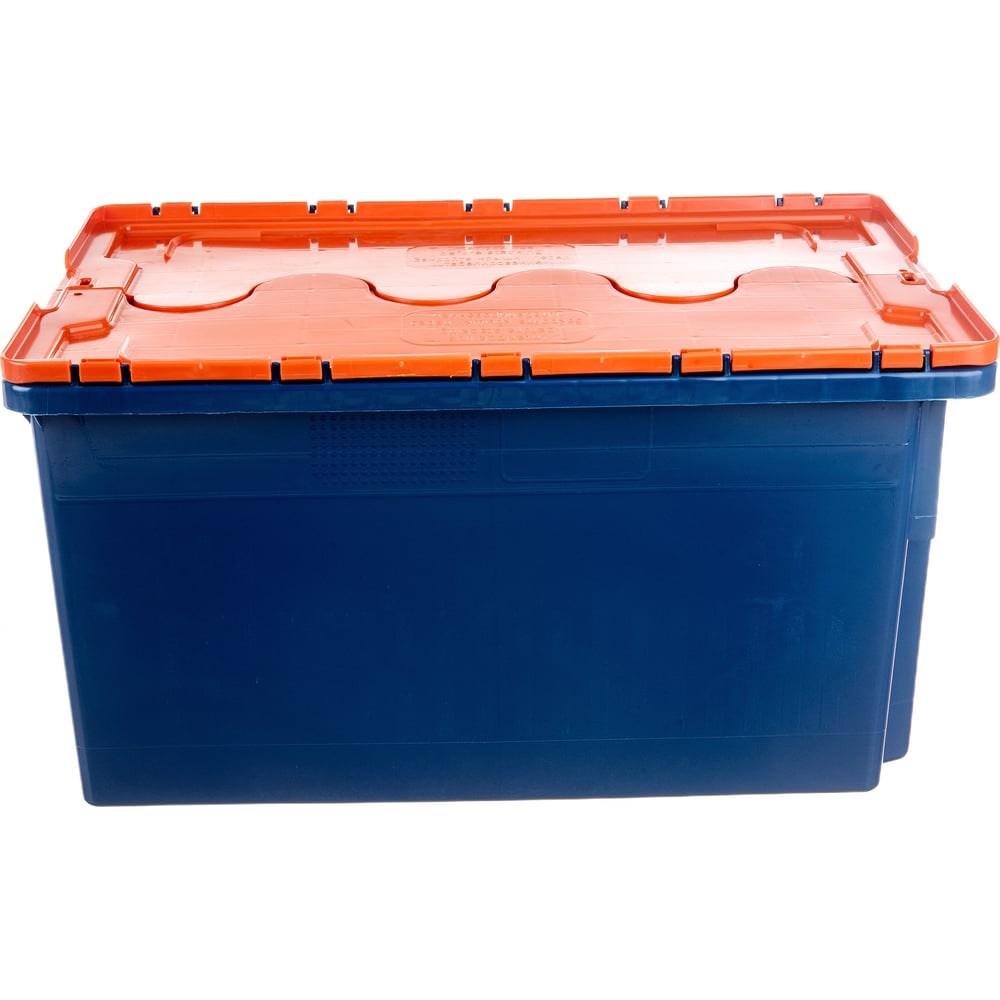 Ящик п/э 600х400х300, сплошной, синий с оранжевой крышкой Тара.ру 18663 имеет большой объем и отлично подойдет для овощей и фруктов, а также любых других продуктов.Модель хороша как для хранения, так и для транспортировки, поскольку имеет ребра жесткости.
