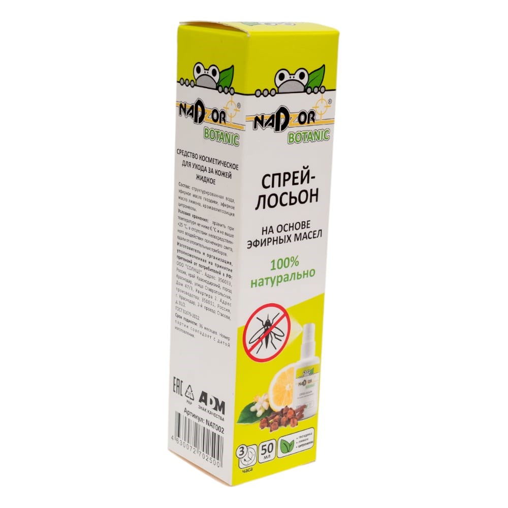 защищает от нападения комаров в течение 3-х часов. Эфирное масло гвоздики обладает резким запахом, который очень не нравится комарам, мошкам и клещам. Он воздействует на нервные окончания обонятельных органов насекомых, лишая их желания нападать. Эфирное масло лимона, благодаря наличию в его составе ароматных соединений, представляет собой природный репеллент, эффективно отпугивающий большинство летающих и ползающих насекомых. Аромат цитронеллы обладает мощным отпугивающим эффектом, забивает рецепторы насекомых.