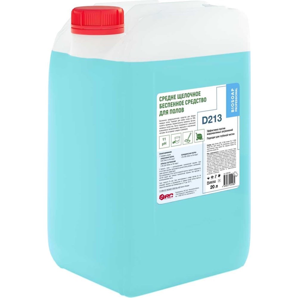 Среднещелочное беспенное средство для полов АиС BIOSOAP Proffecional / D213 20л 9060188 подходит для мойки полов из ПВХ, гранита, мрамора, керамогранита, ламината, бетона, наливных полов и тд. Легко справляется с уличными въевшимися загрязнениями, жирными и масляными пятнами. Не оставляет следов и разводов.Применение:Разбавить водой: ЕЖЕДНЕВНАЯ УБОРКА 0,5% (50мл на 10л воды), ПЕРИОДИЧЕСКАЯ УБОРКА 1-2% (100-200мл на 10л воды); СИЛЬНЫЕ ЗАГРЯЗНЕНИЯ 3-5% (300-500мл на 10л воды).Вымыть полы с использованием поломоечной машины (при отсутствии машины допускается ручной метод уборки с использованием моечного инвентаря). При разбавлении 3-5%, после основной очистки, промыть поверхность чистой водой при помощи поломоечной машины или вручную с использованием мопа.