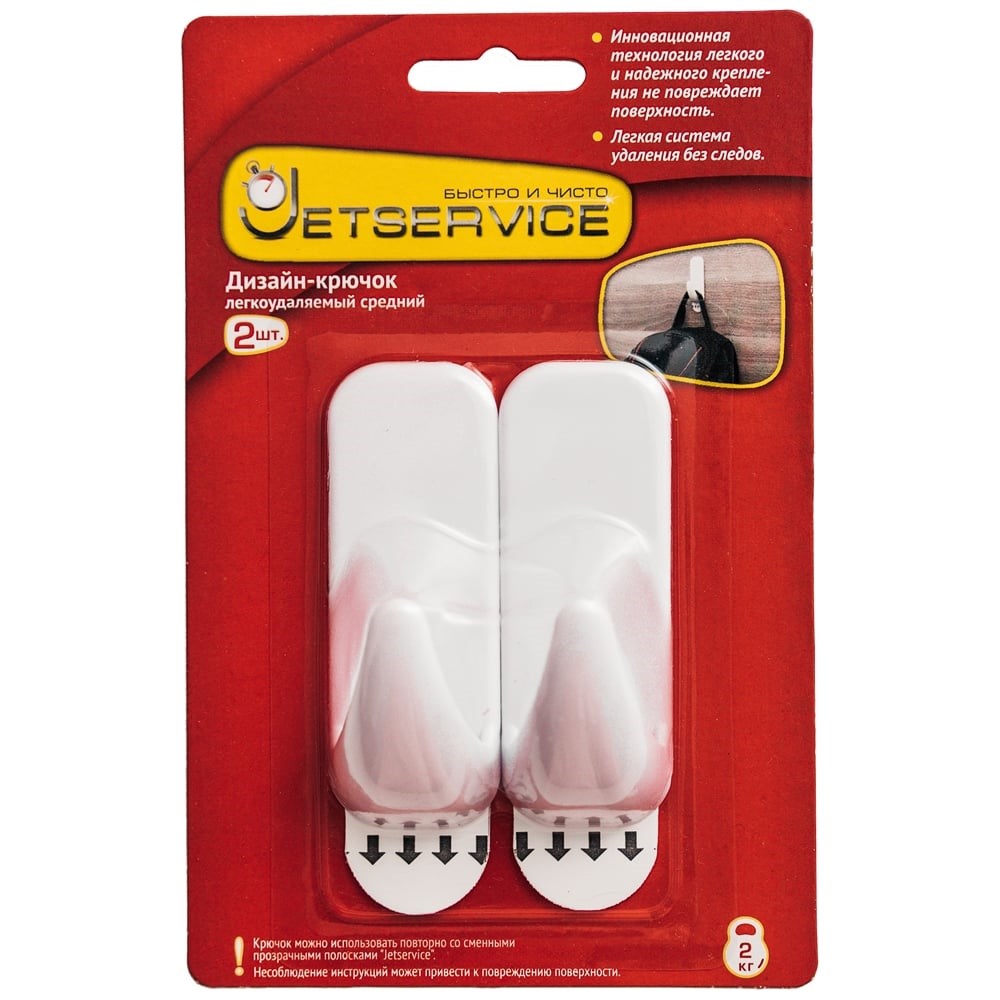 Дизайн-крючок Jetservice средний, легкоудаляемый, 2 шт. 77781 - незаменимый помощник для организации хранения одежды, инструментов, мелких предметов в доме. Благодаря инновационной технологии крючок крепится к поверхности легко и надежно, не повреждая ее. Удалить крючок можно быстро, легко и бесследно, просто потянув клейкую полоску за язычок вниз. Можно использовать повторно со сменными клеевыми полосками Jetservice (приобретаются отдельно). Выдерживает нагрузку до 2 кг. В комплект входят 2 крючка и 3 клейкие полоски.