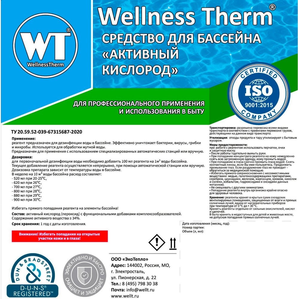 Средство для бассейна Wellness therm Активный кислород