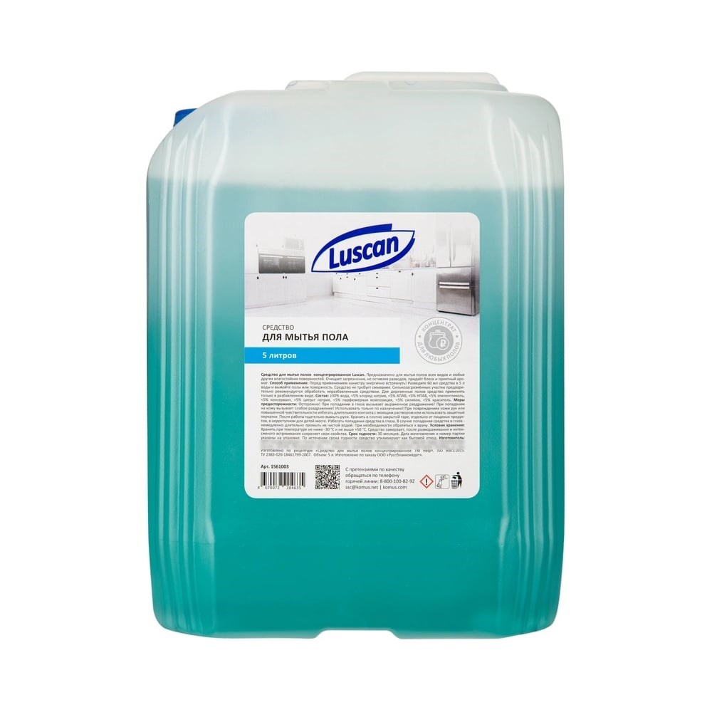 Средство для мытья пола Luscan 5 л., концентрат, канистра 1561003 легко и быстро позволяет очистить ламинат, кафель, линолеум, дерево. Перед применением флакон встряхнуть. Способ применения: Разведите 60 мл (2 колпачка) средства в 5 л воды. Средство не требует смывания.