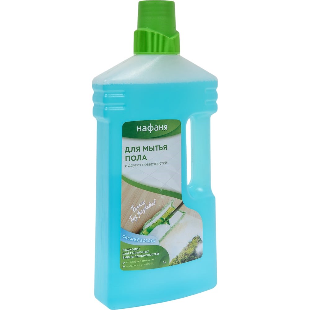 Средство для мытья полов Нафаня Универсал Свежий воздух 1000 мл НМП- 04 предназначено для очистки полов различного типа. Подходит для квартир, вольеров, будок, питомников и других помещений. Устраняет неприятные запахи, и пятна. Дезинфицирует поверхность пола. Придаёт приятный аромат помещению. Не требует смывания водой. Быстро высыхает, не оставляя следов. Не вызывает аллергии у животных. Безвредно для человека. Способ применения: Развести 40 мл или 1 колпачок средства на 8 л воды. Не требует смывания. При сильных загрязнениях возможно увеличение концентрации раствора или применение неразбавленным.