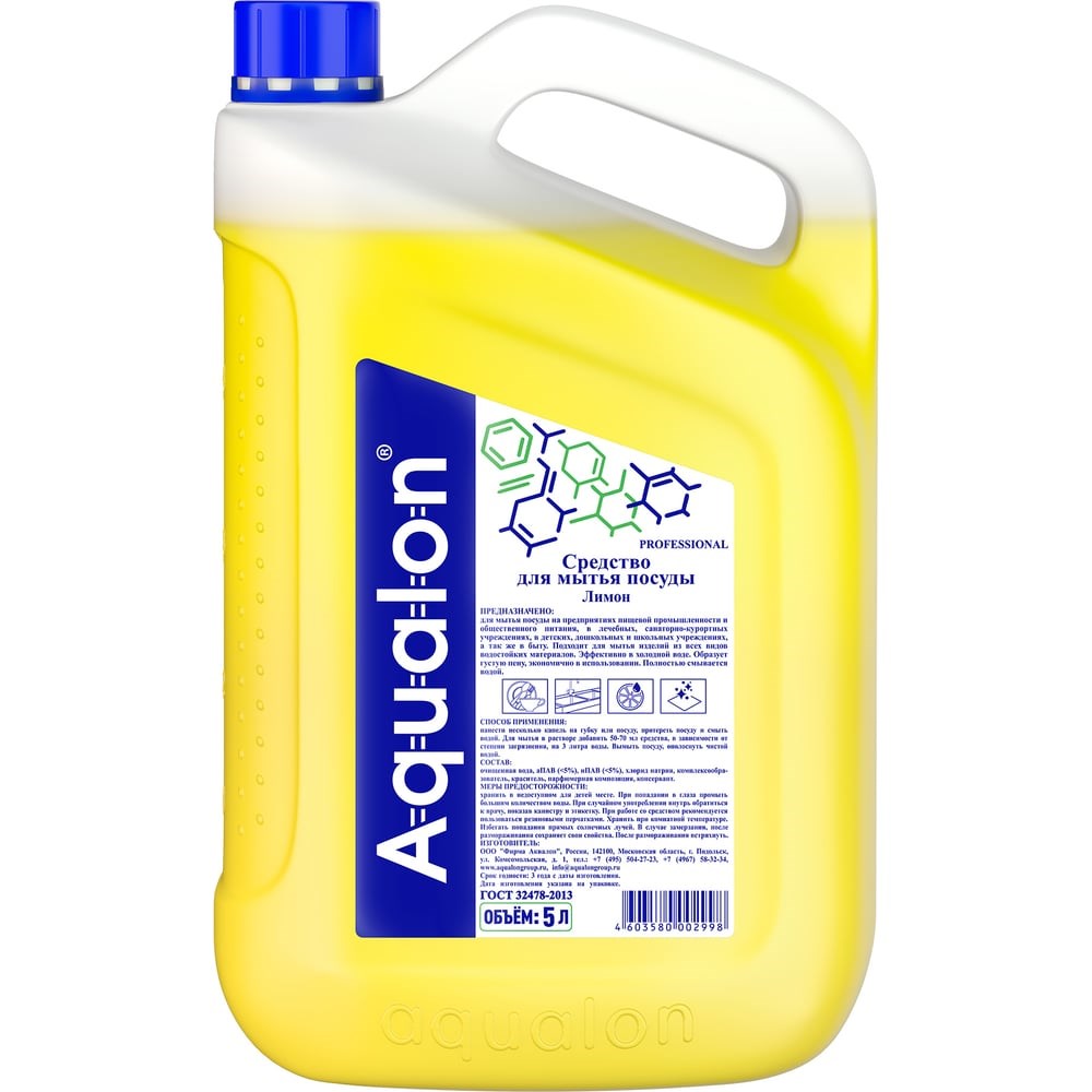 Средство для мытья посуды AQUALON эффективно удаляет жиры животного и растительного происхождения, пищевые загрязнения, чайный налет и другие. Хорошо смывается водой и обладает отличным пенообразованием.Средство для мытья посуды предназначено для ручной мойки различных видов посуды из стекла, фаянса, фарфора, хрусталя, нержавеющей стали, чугуна и др. Эффективно моет в холодной и горячей воде любой жесткости. Содержит в составе смягчающие добавки.