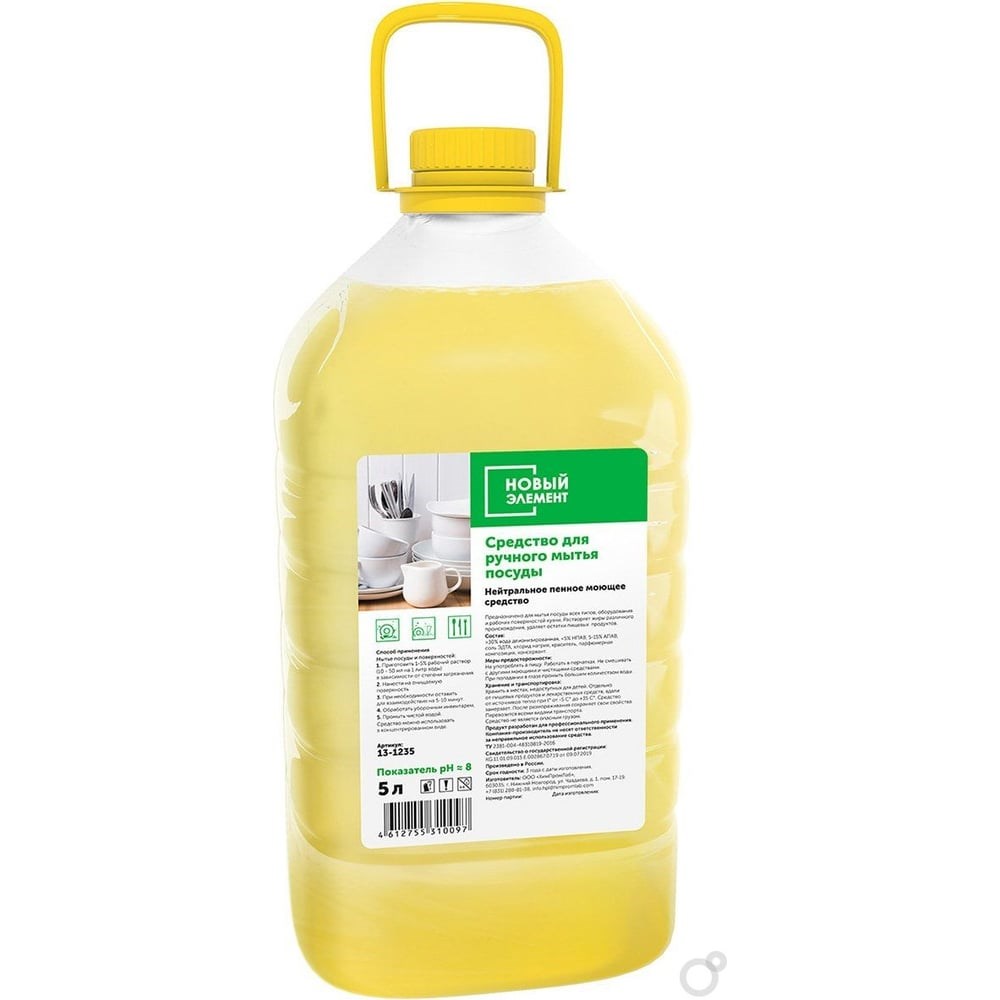Средство для мытья посуды Новый Элемент - нейтральное средство для мытья посуды всех типов, оборудования и рабочих поверхностей для кухни. Эффективно удаляет остатки пищевых продуктов, жиры различного происхождения. Область применения: профессиональный клининг, административные и общественные здания, учебные и медицинские учреждения, предприятия торговли и общественного питания, гостиницы и рестораны, промышленные предприятия и транспорт. Способ применения: В зависимости от степени загрязнения средство разводится от 1% до 5% (100-500 мл концентрата на 10 литров воды). На поверхность наносится губкой. При необходимости применить механическое воздействие абразивом губки. Смыть водой. Можно использовать в концентрированном виде. Меры предосторожности: работать в перчатках. Не работать концентратом. Хранить в местах, недоступных для детей. Хранение и транспортировка: отдельно от пищевых продуктов и лекарственных средств, вдали от источников тепла. Хранить при температуре от -5°С до +30°С, после оттаивания сохраняет свои свойства. Перевозится всеми видами транспорта. Средство не является опасным грузом.