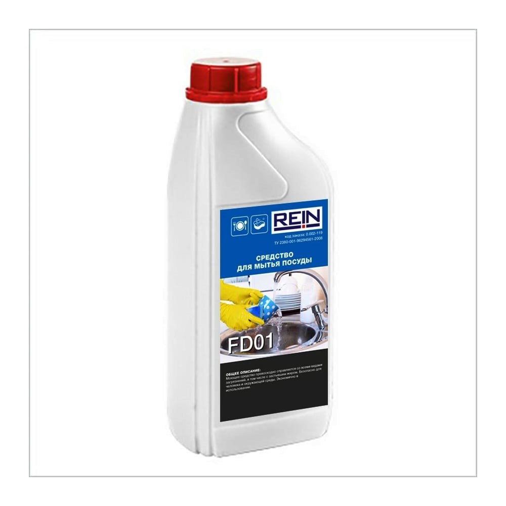 Средство для мытья посуды Rein FD 01 1 л 0.002-119 подходит для чистки поверхностей и оборудования. Состав применяется при очистке посуды от стойких пищевых пригаров и жира. Легко смывается водой и удаляет неприятные запахи, поэтому облегчает чистку. Экономный расход позволяет пользоваться средством долгое время.