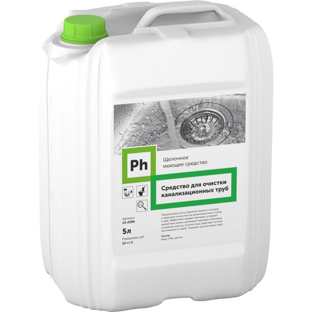Средство для очистки канализационных труб PH 5 л 13-2599 для устранения пробок и засоров в труднодоступных местах канализационных стоков и труб. Средство универсально и подходит для всех видов труб. Канистра имеет ручку для переноски, что удобно при использовании.