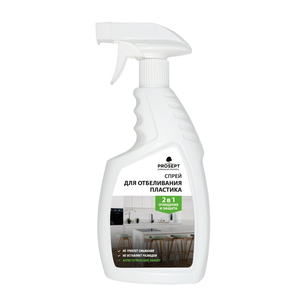 Средство для отбеливания изделий из пластика PROSEPT universal plastic 750 мл 309-075 предназначено для очистки и восстановления белизны пластиковых поверхностей после бытовых и атмосферных загрязнений. Применятся для чистки: пластиковых окон, подоконников, балконных блоков, жалюзи, садовой мебели, бытовой техники. Удаляет: табачный налет, сажу, желтые разводы от воды. Применение: Насадку распылителя повернуть в положение Spray. Распылить средство на поверхность. Выдержать 2-3 минуты, растереть и удалить остатки средства с растворенными загрязнениями влажной салфеткой. При наличии сильных загрязнений обработку повторить. Дополнительно промыть чистой водой поверхности, контактирующие с пищевыми продуктами.