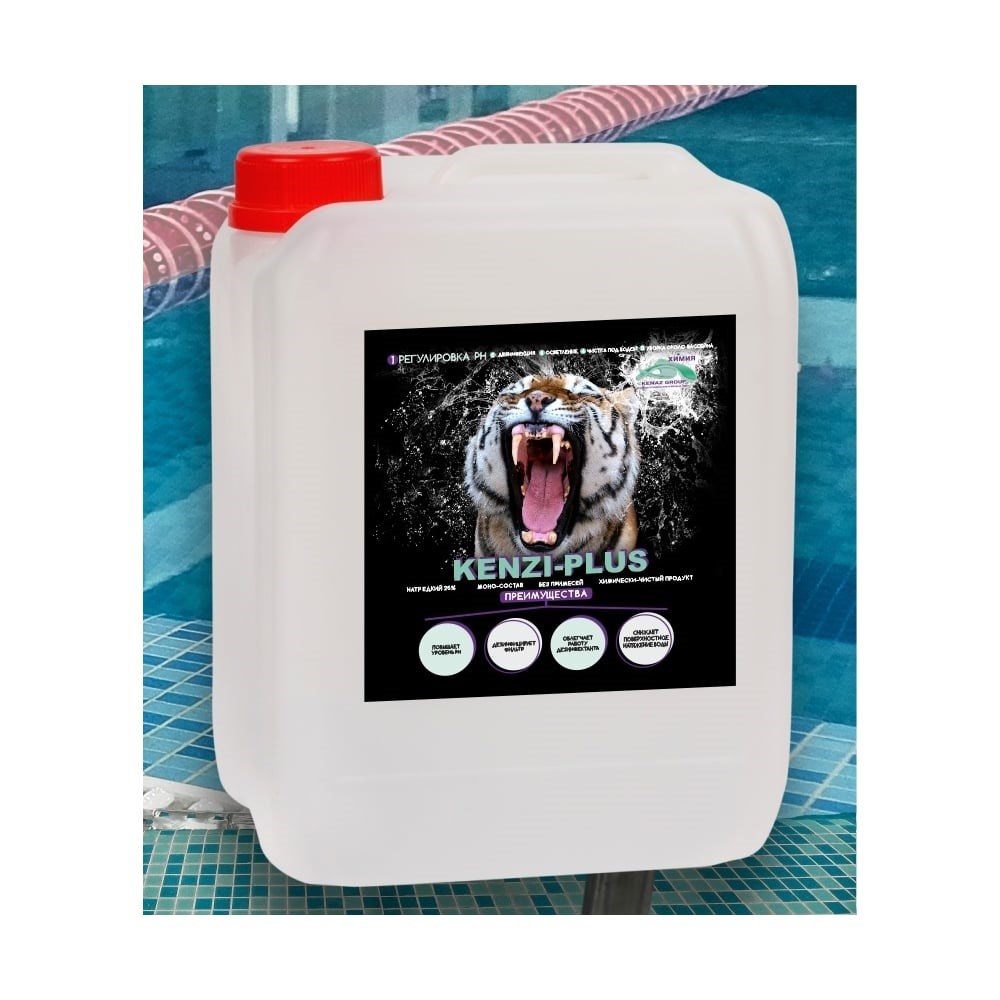 Средство для повышения уровня рН КЕНЗИ-ПЛЮС для бассейна, 5 л 42135 предназначено для повышения кислотно-щелочного баланса воды в бассейне до оптимального уровня (7.2-7.6).Перед началом дезинфекции воды бассейна (борьбой с водорослями, мутью, ржавой водой) необходимо довести показатели уровня рН до 7.2-7.6. Тем самым повысится эффективность дезинфицирующих средств и коагулянтов, снизится поверхностное натяжение воды, уберется пена. Имеет моно состав: натр едкий 25% концентрации, прошедший химическую очистку. Без примесей, стабилизаторов и воды в составе. Используется для повышения рН в грудничковых и общественных бассейнах, джакузи, аквапарков, домашнего использования (дачных бассейнов). Инструкция по использованию средства: Добавляется КЕНЗИ-ПЛЮС в воду бассейна с помощью автоматических станций дозирования или ручным способом. Дозировка для повышения значения рН воды на 0,1 единицу: 0,1 л препарата на 10 м3 воды. При ручной дозировке препарат надлежит предварительно развести в чистой пластиковой емкости с водой, препарат добавляется в воду, а не наоборот!!! ВАЖНО!!! Полученный раствор вылейте по периметру бассейна вдали от форсунок, скиммеров, других элементов оборудования бассейна. Не рекомендуется допускать людей к купанию в течении 30 минут после ручного добавления препарата в воду. А также хлорный дезинфектант добавляется через 40 минут, после добавления средства для повышения рН.