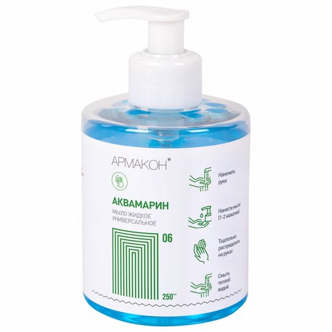 Средство очищающее мыло жидкое 250 мл, АРМАКОН АКВАМАРИН, флакон, дозатор, 1335