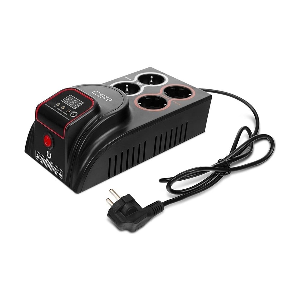 Стабилизатор напряжения CBR CVR 0105 имеет цифровую индикацию значений входного/выходного напряжения. LED-индикация режимов работы стабилизатора на корпусе устройства. Корпус изготовлен из термоустойчивого пластика.