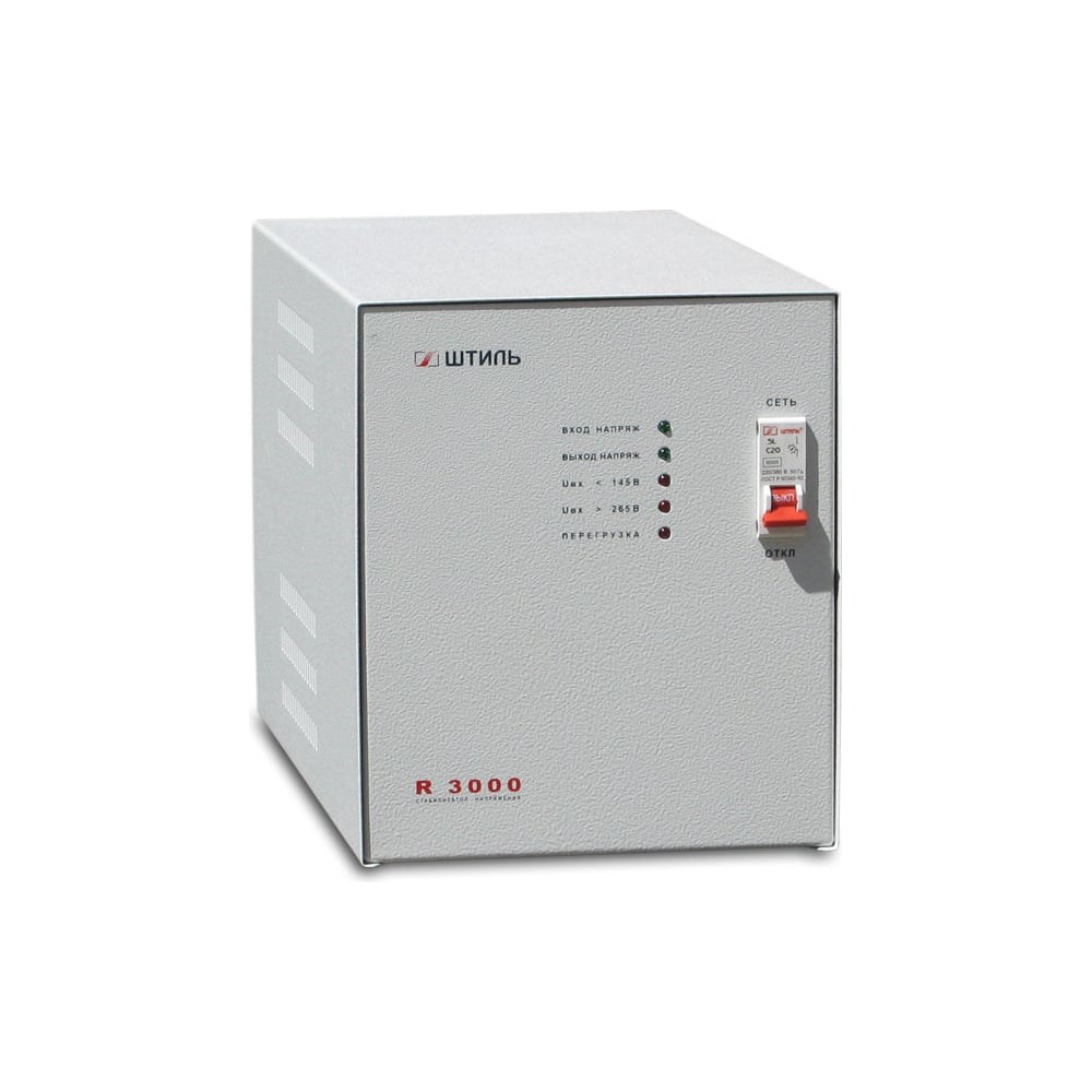 Стабилизатор переменного напряжения Штиль R 3000 - прибор для защиты электрооборудования суммарной мощностью до 3 кВА от перепадов напряжения. Надежная система защиты с функцией автоматического отключения питания при скачке напряжения срабатывает почти мгновенно, что обеспечивают долгую и стабильную работу подключенных устройств. Широкий температурный диапазон (+1-+40 градусов) позволяет использовать прибор в помещениях различного типа..