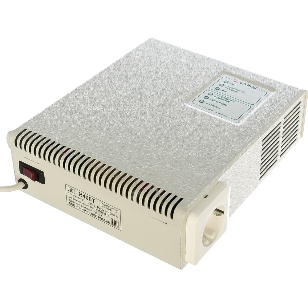Стабилизатор переменного напряжения настенный Штиль R 400T мощностью 0,4 кВт предназначен для защиты от перепадов напряжения электрических котлов и нагревателей мощностью до 400 ВА. Корпус выполнен в настенном варианте, в комплектацию входит кронштейн для крепления. Специальный алгоритм позволяет стабилизатору автоматически отключать питание при перегрузке, и включать его при стабилизации напряжения. Смена режима работы сопровождается оповещением системы индикации.