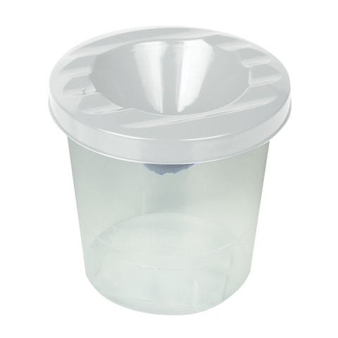 Специальная форма крышки стакана исключает возможность вытекания воды. Линия на прозрачном корпусе указывает на максимально возможный уровень наполнения. Выполнен из прочного пластика. Имеются специальные углубления на крышке для размещения кисточек. Полный объем - 210 мл. Объем до уровня - 75 мл.
