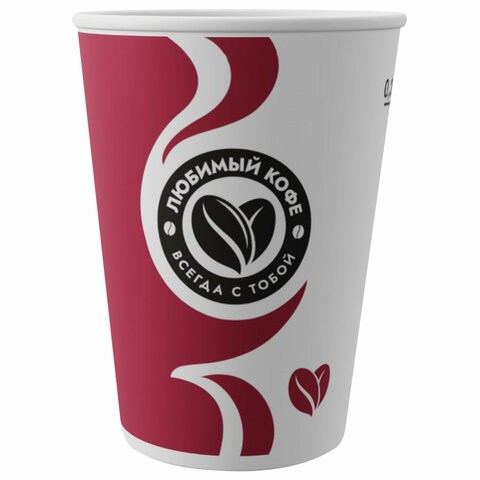 Стакан одноразовый бумажный 300/425 мл, D 90 мм, КОМПЛЕКТ 50 шт., однослойный, холодное/горячее, "Любимый кофе", СКАНДИПАКК, -5103