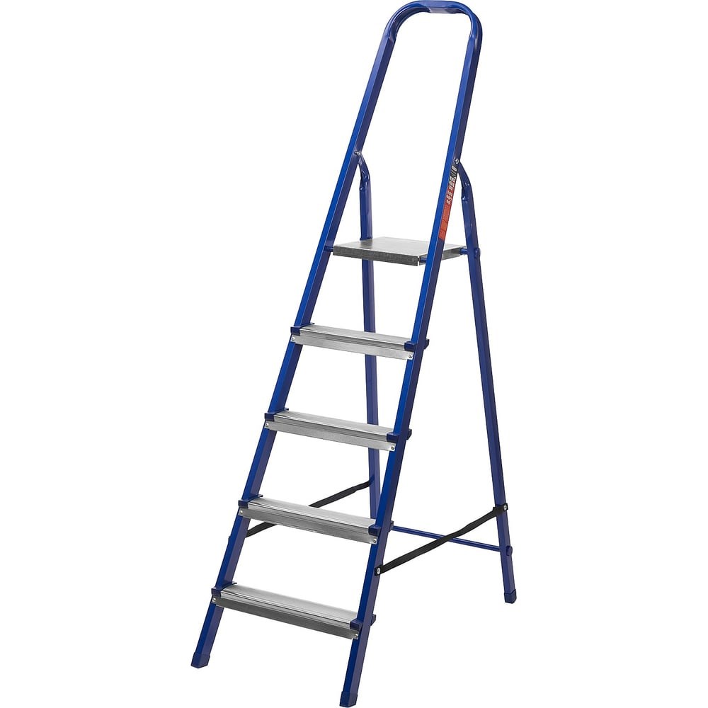 Стальная лестница-стремянка MIRAX 5 ступеней, 101 см 38800-05 применяется на производстве и в быту. Снабжена широкими ступенями для удобства при подъёме и спуске. Благодаря наличию высокой дуги работник может безопасно выполнять различные высотные работы. Пластиковые заглушки на ножках препятствуют скольжению.