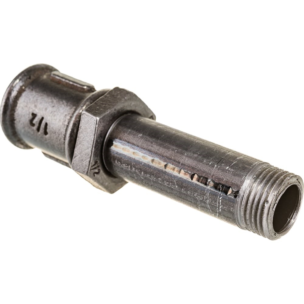 Сгон ДТРД стальной, в сборе с муфтой и контргайкой чугунными Ду 15 (1/2") L-110 12150110 изготовлен из водогазопроводных труб (ГОСТ 3262-75) и имеет следующие технические характеристики:Условный проход (Ду) - 15(1/2");Наружный диаметр - 21,3 мм;Толщина стенки трубы - 2,8 мм;Резьба трубная цилиндрическая -1/2";Длина резьбы - 40 и 9 мм.