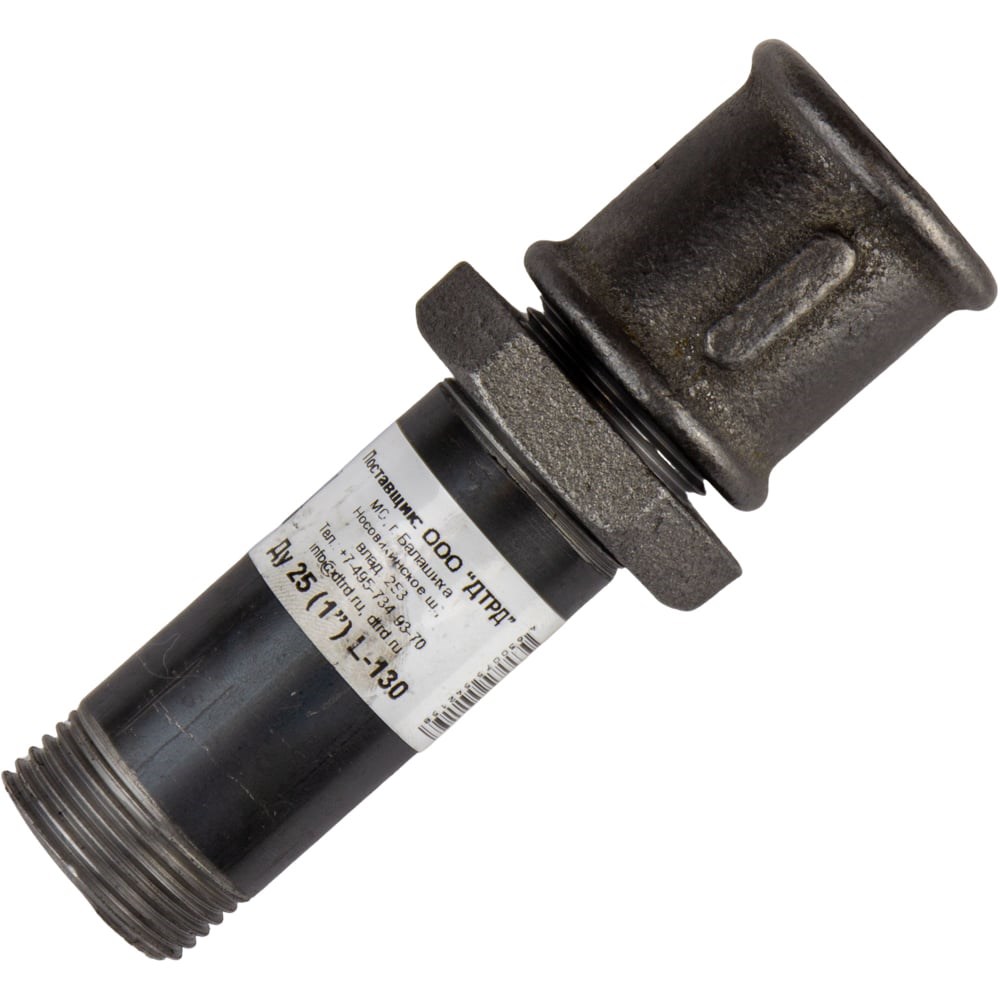 Сгон с муфтой и контргайкой чугунными ДТРД Ду 25 1 L-130 МК ч. 12250130 – предназначен для соединения водогазопроводных труб, с применением уплотнителя, в системах отопления, водопровода, газопровода и других системах, работающих в условиях неагрессивных сред (вода, насыщенный водяной пар, горючий газ и др.) при температуре проводимой среды не выше 175°С и давлении Р=1,6 МПа. Сгон стальной в сборе с муфтой и контргайкой чугунными изготовлен в соответствии с требованиями ГОСТ 8969-75. Для монтажа дополнительно требуется уплотнительный материал.