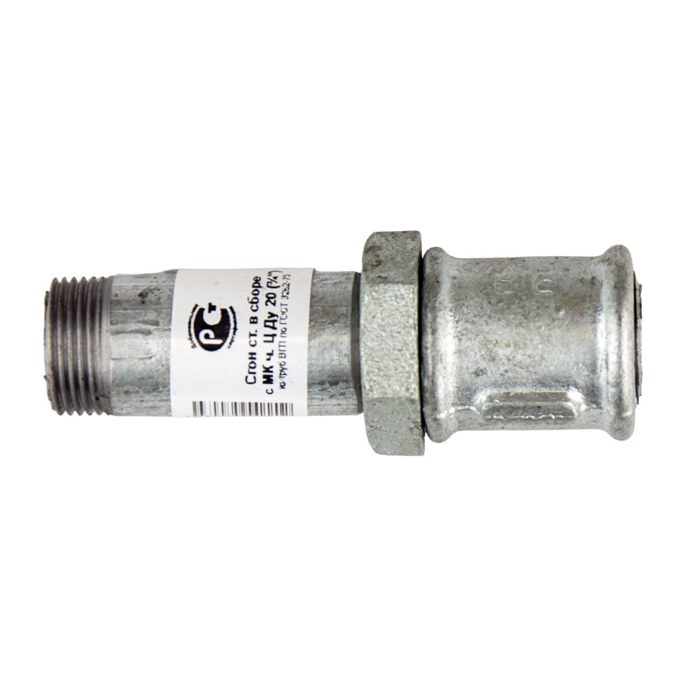 Сгон ДТРД стальной, в сборе с муфтой и контргайкой чугунными оцинкованный Ду 20 (3/4") L-110 МК ч. Ц 13200110 изготовлен из оцинкованных водогазопроводных труб (ГОСТ 3262-75) и имеет следующие технические характеристики:Условный проход (Ду) - 20(3/4");Наружный диаметр - 26,8 мм;Толщина стенки трубы - 2,8 мм;Резьба трубная цилиндрическая -3/4";Длина резьбы - 45 и 10,5 мм;Покрытие - горячее цинкование.