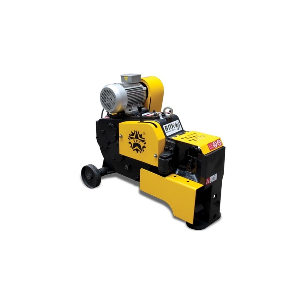 Станок для резки арматуры VPK Р-55 1102006683 используется для резки арматуры в промышленных масштабах. Устройство предназначено для работы с толстыми штучными прутками арматуры или несколькими прутками меньшего диаметра. Толщина варьируется в зависимости от типа стали. Для жесткой А-500С максимальный диаметр составляет 42 мм. Для облегчения транспортировки оборудования в пределах помещения добавлена ось с парой стальных колес. Движение ножа при резке осуществляется за счет кулисного механизма.