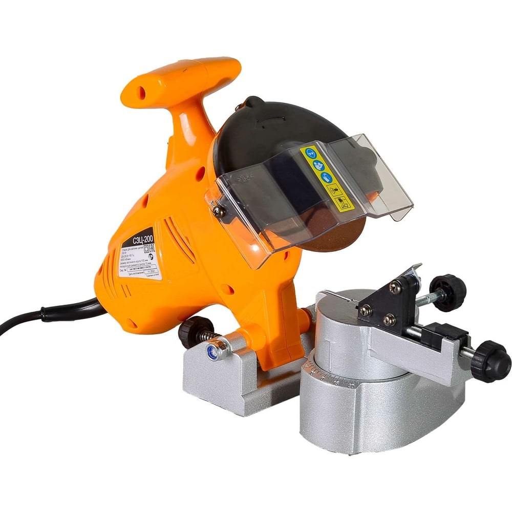 Станок для заточки цепей – функциональный инструмент, который существенно упрощает заточку цепи, при этом не требует специальных навыков. Отличается универсальностью, так как может применяться для бензиновых и электрических пил, при этом шаг цепи значения не имеет. Изменить настройки удается без усилий за считанные минуты благодаря регулировочным винтам. Установочный винт позволяет точно выставить цепь по отношению к точильному камню, что помогает добиться высокого качества заточки. Основание станка имеет специальные отверстия, которые позволяют его надежно закрепить к верстаку и тем самым уменьшить вибрации. Станок для заточки цепей отличается продуманной конструкцией и компактными размерами, комплектуется эргономичной ручкой, которая существенно упрощает использование приспособления. Высокую производительность обеспечивает двигатель мощностью 200 Вт. Также модель оснащена защитным экраном для повышения безопасности во время работы. Он легко откидывается при необходимости. Корпус станка имеет вентиляционные отверстия, через которые отводится нагретый воздух, что предупреждает перегрев инструмента и его преждевременный выход из строя. Среди особенностей станка стоит отметить наличие ограничителя глубины.