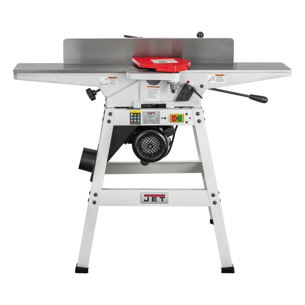 Фуговальный станок JET JJ-6OS ширина 150 мм, 230 В 10000281M предназначен для обработки древесины. Длинные чугунные столешницы регулируются по высоте при помощи наклонных направляющих. Асинхронный однофазный двигатель находится под открытой подставкой. Фуговальный упор с кронштейном выполнены из массивных чугунных отливок. Строгальный вал оснащен тремя прямыми лезвиями. При необходимости возможна установка вала helical с твердосплавными режущими сегментами.