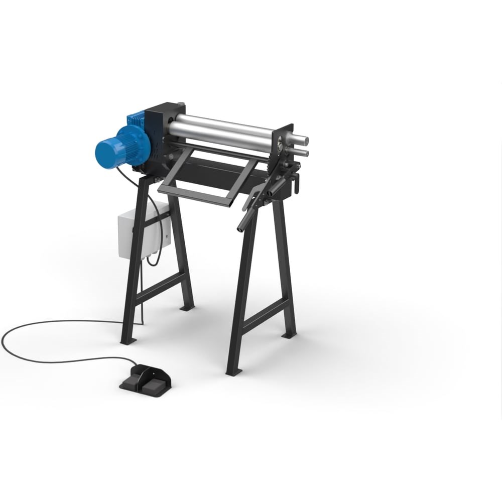 Станок Вальцы Keepler-Stan RMEA-550x2 mini УФ-00005576 предназначен для изготовления обечаек, труб, дымоходов. Особенности: цельнометаллические валы изготовлены из инструментальной стали 45, асимметричное расположение валов с правильной геометрией расположения нижнего и бокового вала для исключения прямых участков на прокатываемой обечайке, эксцентриковая система подъема нижнего и бокового вала; боковым валом задается нужный радиус прокатываемой обечайки, общий привод на верхний и нижний вал осуществляется при помощи зубчатых колес, что исключает проскальзывания заготовки между валами, реализован быстросъем заготовки путем откидывания верхнего вала в бок, станок полностью разборный и ремонтопригодный, подшипники с запасом прочности в 2 раза, ножная педаль управления с реверсивным движением верхнего и нижнего вала вперед, назад. Характеристики: рабочая поверхность валов 550 мм, диаметр валов 58х58х71 мм, минимальный диаметр гибки листа 120 мм.