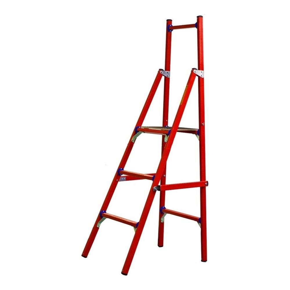 Стремянка не проводит электрический ток и является дополнительным изолирующим электрозащитным средством, предназначена для использования: в электроустановках при проведении их ремонта на предприятиях нефтегазового промышленного комплекса; в службах телекоммуникационных сетей; в цехах промышленных предприятий. Модель снащена противоскользящими заглушками, которые обеспечивают устойчивость стремянки и защищают напольное покрытие от повреждений. Вертикальная опора позволяет разместить стремянку вплотную к рабочей поверхности, а рабочему - стоять на ней лицом к объекту. Благодаря складной конструкции изделие не займет много места при хранении или транспортировке. Внимание! Количество ступеней отличается от представленного на фото.