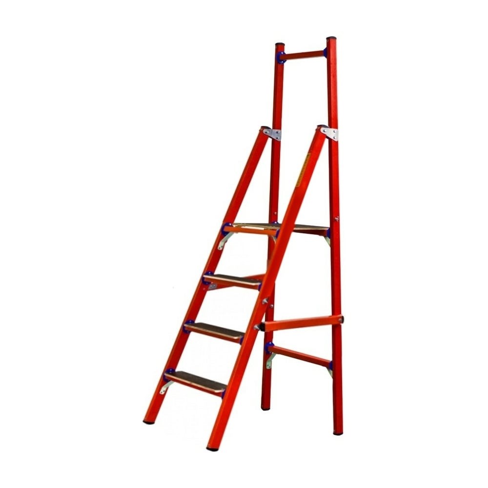Стеклопластиковая диэлектрическая стремянка с вертикальной опорой Диэлектрик СВД-2,5 ЕТ Д413755 не проводит электрический ток и является дополнительным изолирующим электрозащитным средством, предназначена для использования: в электроустановках при проведении их ремонта на предприятиях нефтегазового промышленного комплекса; в службах телекоммуникационных сетей; в цехах промышленных предприятий. Модель снащена противоскользящими заглушками, которые обеспечивают устойчивость стремянки и защищают напольное покрытие от повреждений. Вертикальная опора позволяет разместить стремянку вплотную к рабочей поверхности, а рабочему - стоять на ней лицом к объекту. Благодаря складной конструкции изделие не займет много места при хранении или транспортировке. Внимание! Количество ступеней отличается от представленного на фото.