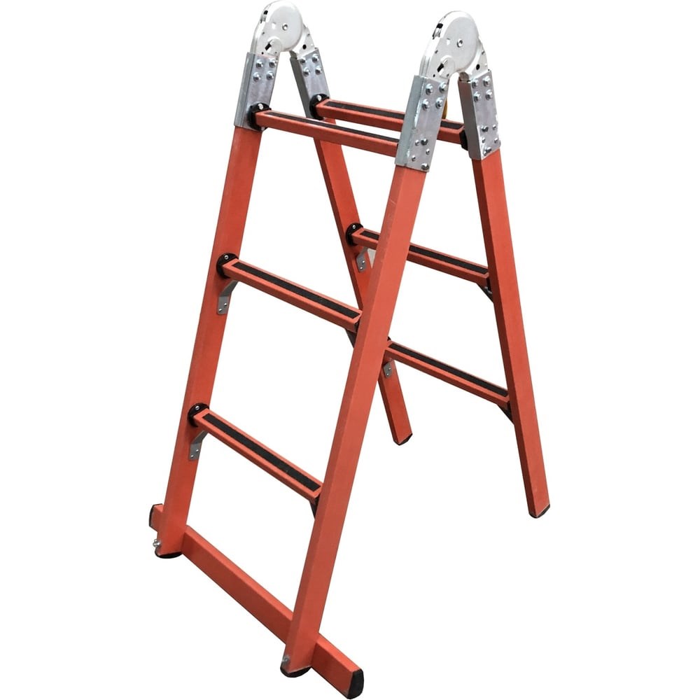 Стеклопластиковая, трансформируемая в стремянку лестница Диэлектрик ЛСПТД-1,0 Д471583 предназначена для безопасного проведения электромонтажных работ на возвышении. Можно использовать и как стремянку, и как приставную лестницу. Позволяет быстро переставлять с места на место и оперативно взбираться за счет малой массы и габаритов.