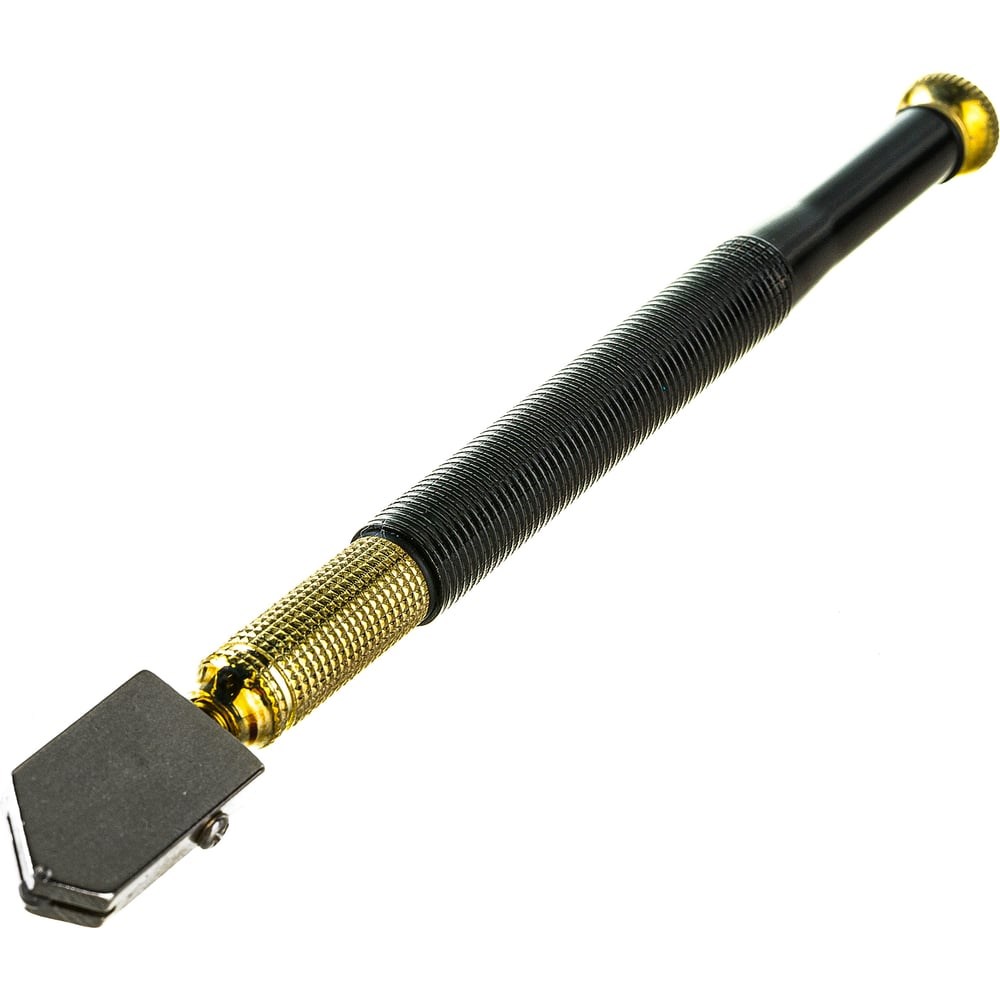 Стеклорез Энкор 9391 продавливает на поверхности стекла канавку. Рабочим элементом является ролик, сделанный из металла. Ручка благодаря рельефной поверхности не скользит в руке и обеспечивает надежный хват. Данный стеклорез используется для прямых и фигурных резов материала.