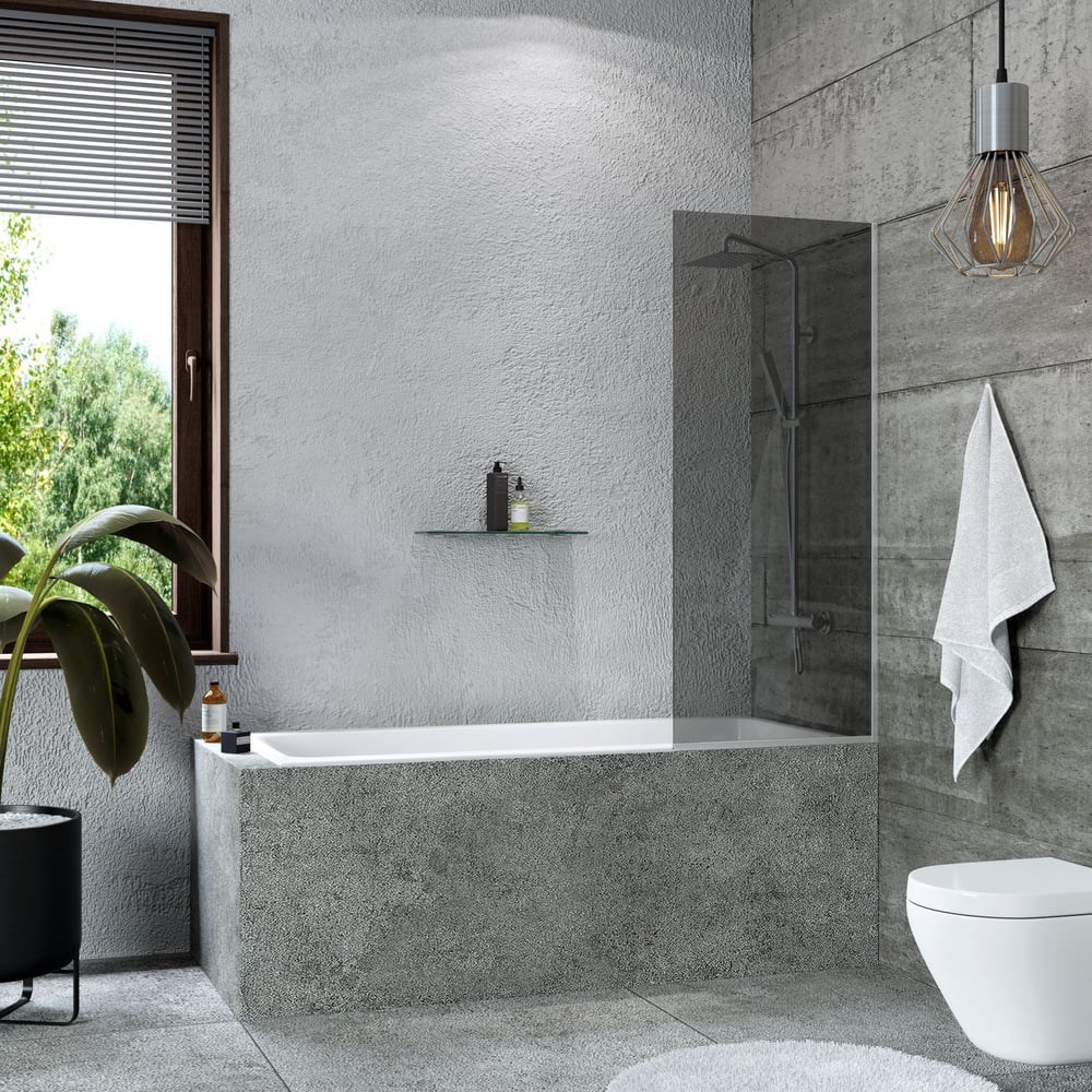 Шторка на ванну стеклянная 50x140 см неподвижная, с профилем хромированного цвета и тонированным стеклом. Данное стекло тонируется в массе - до момента выпуска стекла, в состав добавляется краситель, благодаря такой системе стекло не выцветает и не расслаивается. Светопропускаемость 35%.Подходит к классическим прямоугольным ваннам любого производителя и устанавливается на борт.Благодаря выдержанному дизайну, интерьер станет более строгим.В производстве данного изделия используются материалы только высокого качества. Витраж из безопасного, ударопрочного, закаленного стекла AGC Premium 8 мм, марки М-1, П-образный профиль из анодированного алюминия.