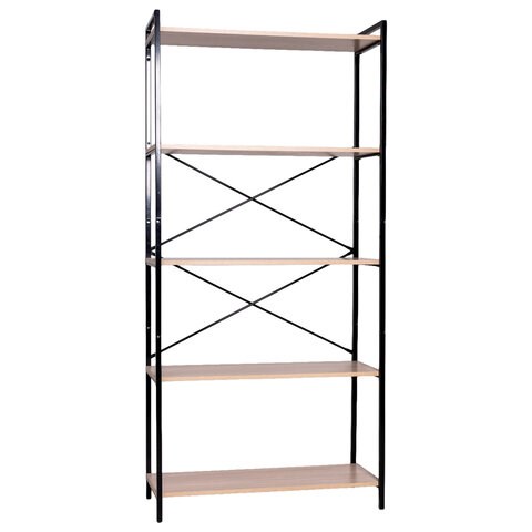 Стеллаж BRABIX "SMART SH-004", 790х360х1950 мм, ЛОФТ, 5 полок, металл/ЛДСП ясень шимо светлый, каркас черный, 641943