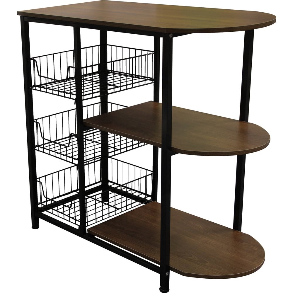 Стеллаж GROMELL 77VM014 оснащен тремя корзинами для хранения овощей, фруктов, консервации и т.д. Регулируемые опоры позволяют надёжно установить стеллаж. Глубина и высота полок позволяет разместить достаточно крупные предметы и бытовую технику.