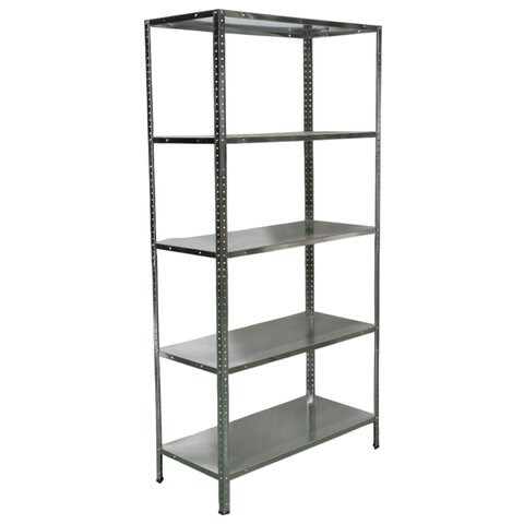 Стеллаж изготовлен из оцинкованной стали, что позволяет его использовать в помещениях с повышенной влажностью.