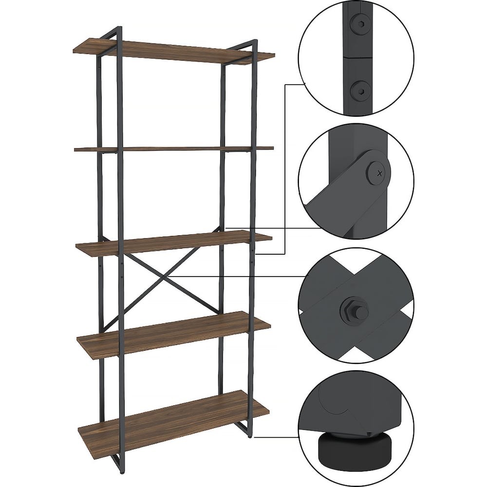 Стеллаж Металл-Завод GUTTA 196x92x34x5 коричневый/черный GS19692345B2 предназначен для организации мест хранения в квартире, доме и офисе. Подходит для хранения книг, посуды и различных вещей. Хорошо вписывается в интерьер гостиной комнаты, кухни, ванной, прихожей и других помещений. Каркас изготовлен из стальной профильной трубы. Полки стеллажа изготовлены из ЛДСП. Максимальная равномерно распределенная нагрузка на каждую полку - 15 кг.Допускается влажная уборка поверхностей с применением моющих средств. Покрытие деталей устойчиво к перепадам температур и влаги. Допускается к эксплуатации в температурных режимах окружающего воздуха от -30 С до +40 С при относительной влажности воздуха 45-80%. Используемое покрытие не выделяет запахов, не имеет инородных включений. Порошковая краска, используемая для создания полимерного покрытия, имеет сертификат соответствия.